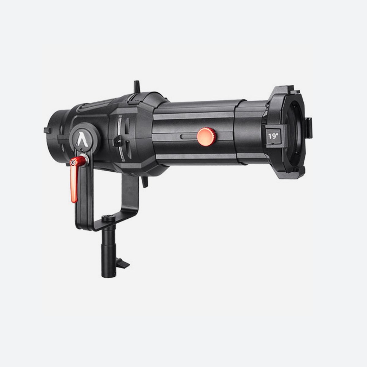 This Aputure Spotlight Mount Set is a versatile light modifier that comes with a 19° lens for producing a dramatic yet clean beam of light. This modifier, which has a Bowens mount, can easily be attached to a variety of lights, including the Light Storm LC 120d II, 120D, and 300D, and its integrated yoke has a dual junior/baby mount for attaching to anything from a C-stand to a lighting grid.