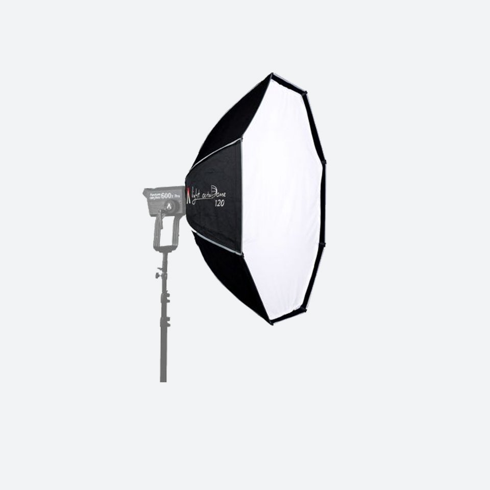 This 8-sided Aputure softbox converts any Bowens Mount point source light fixture into an ultra-soft area light, blanketing your set in diffused light. Its large 120 cm diameter also works well with high-output fixtures like the Aputure LS 1200d Pro, 600d Pro, or 600x Pro to create the ultimate soft source.